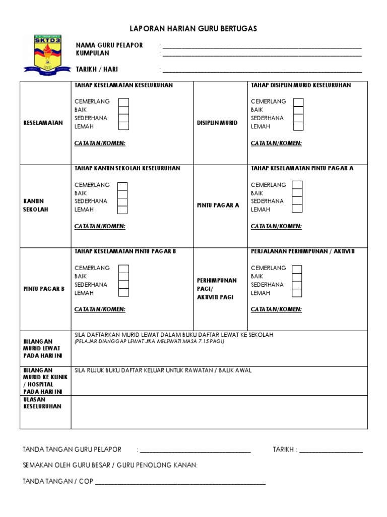 Doc Borang Laporan Guru Bertugas Harian Abdullah Muslim Academia Edu